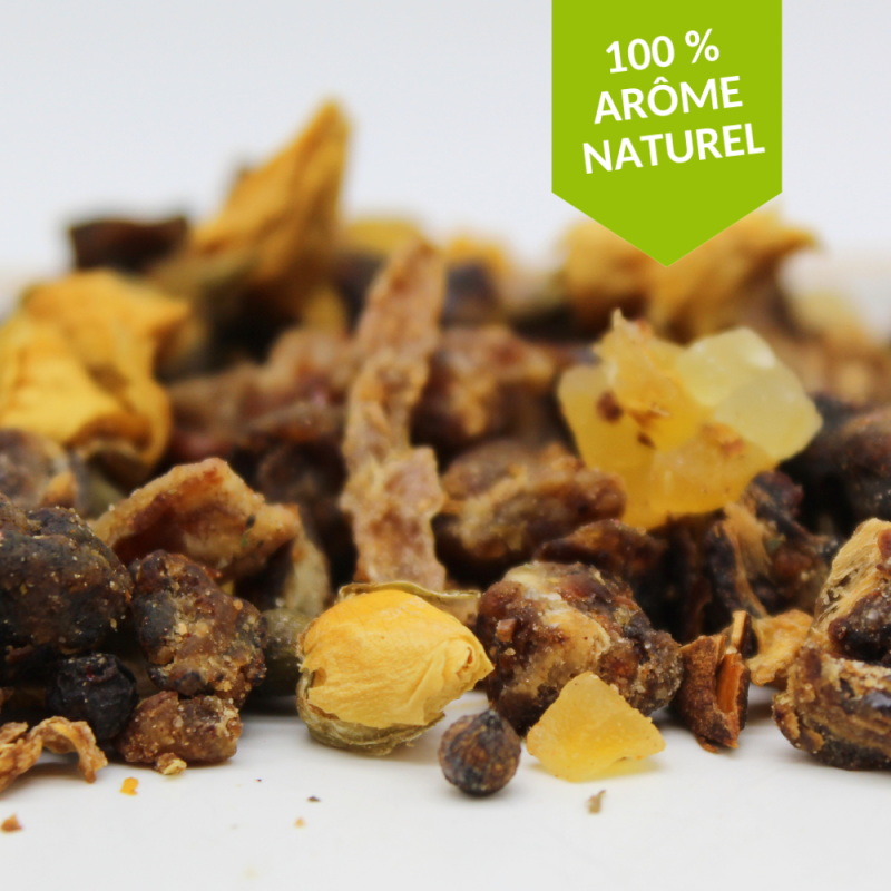 L’orange fruit exotique est ici sublimée par les fruits tropicaux et la douceur des plantes aromatiques. Une infusion vive, fraîche, à la fois acidulée et ronde, idéale pour une pause fruitée pleines de saveurs