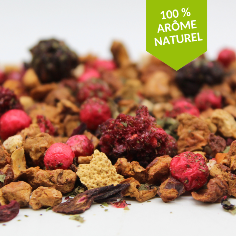 Mélange de fruits et plantes. Fruité. Saveur baies sauvages.