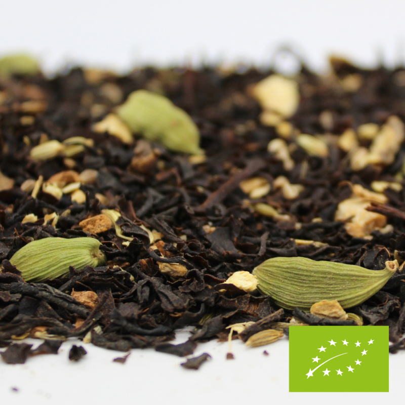 Ingrédients : Thé* noir (48%), cannelle*, anis vert*, gingembre*, cardamome*, fenouil*, girofle*.